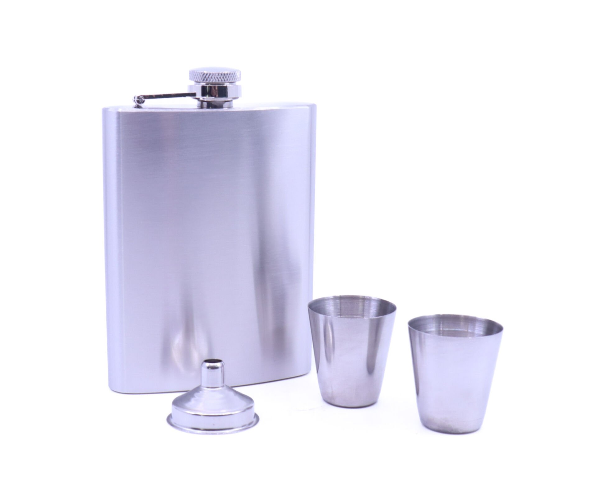 Paslanmaz Çelik İki Shot Bardaklı Matara Seti - Mat Krom